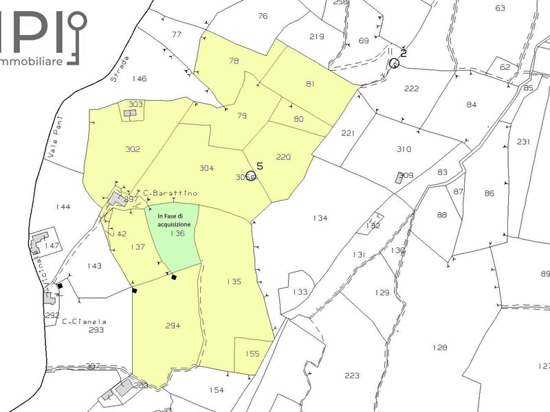 Terreno circostante, in unico corpo, con piante di ulivo, per una superficie complessiva di circa 6 ettari.