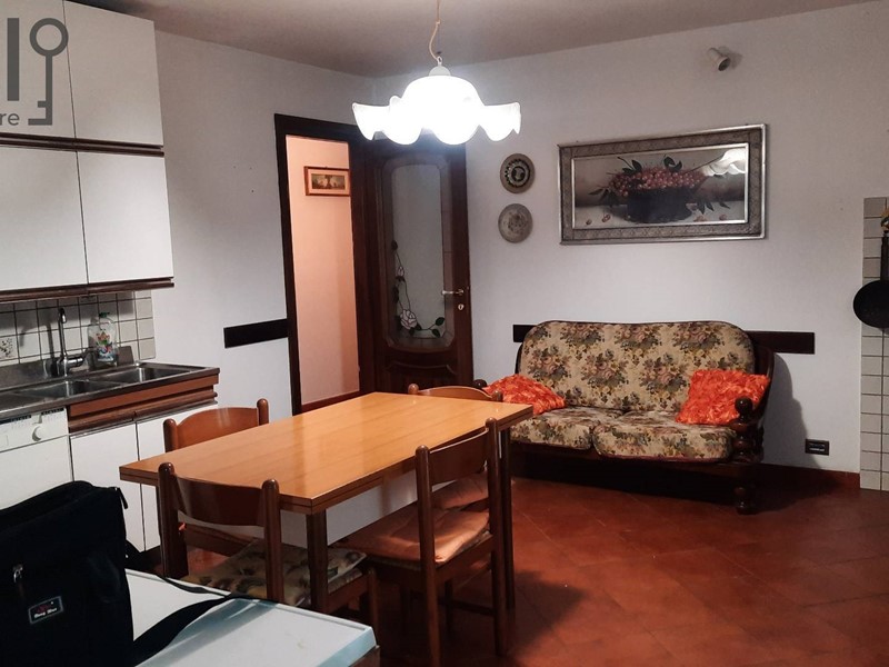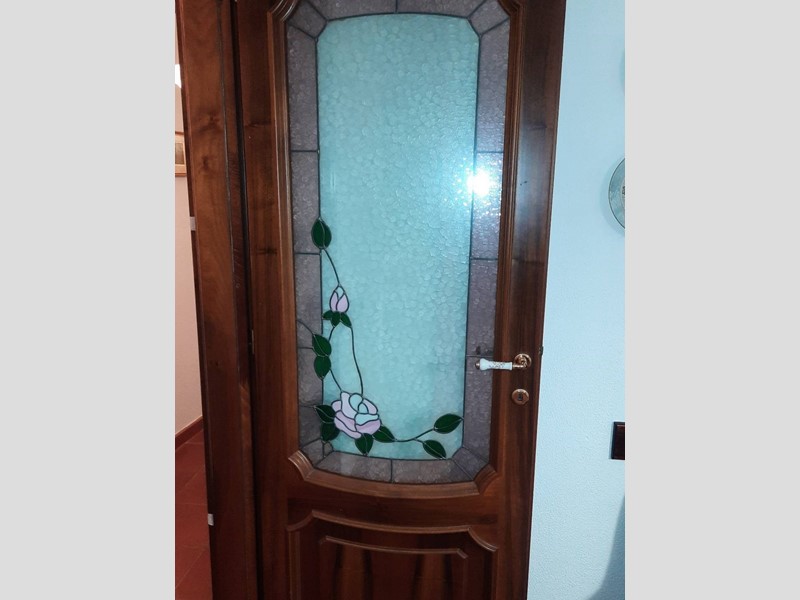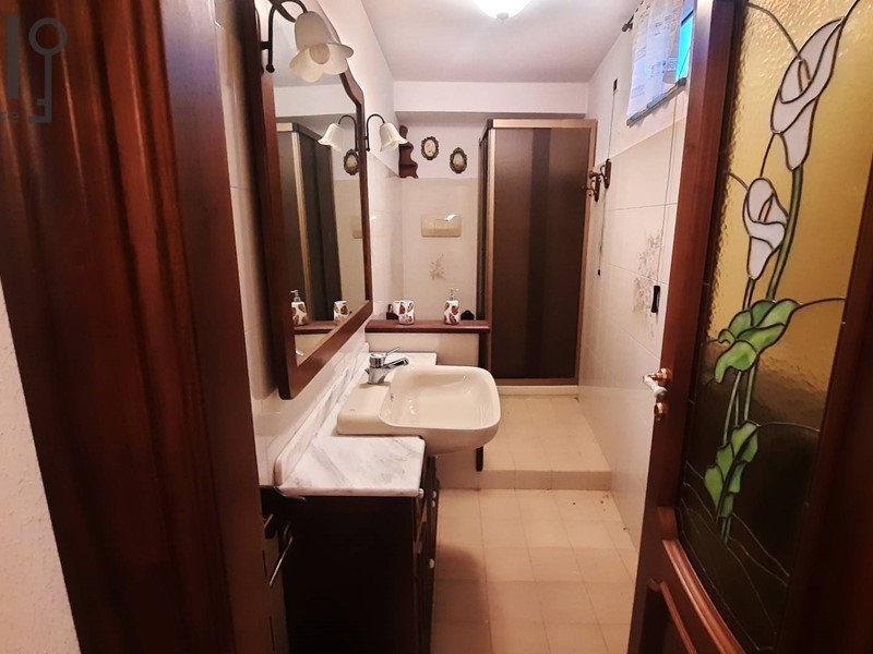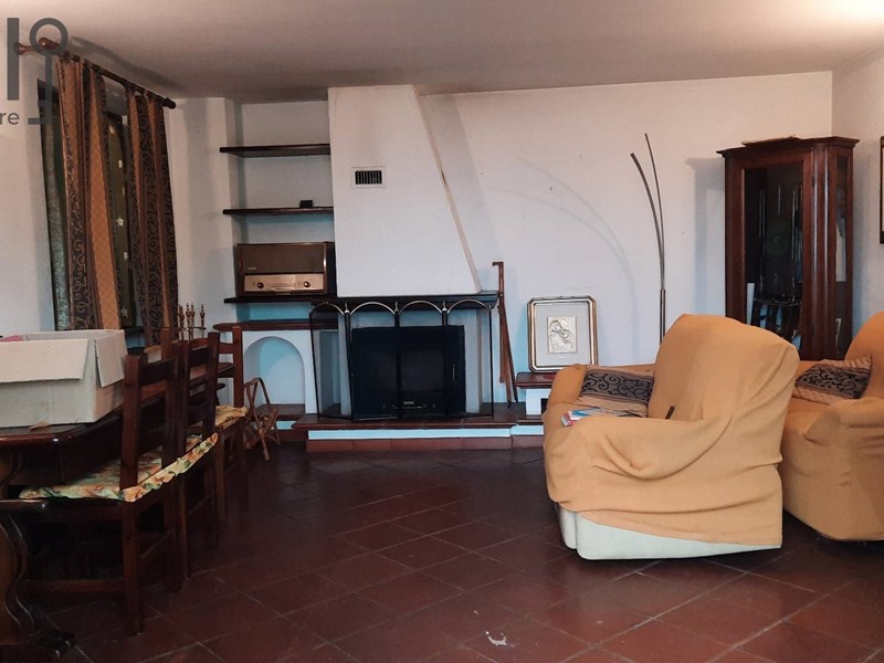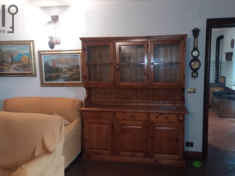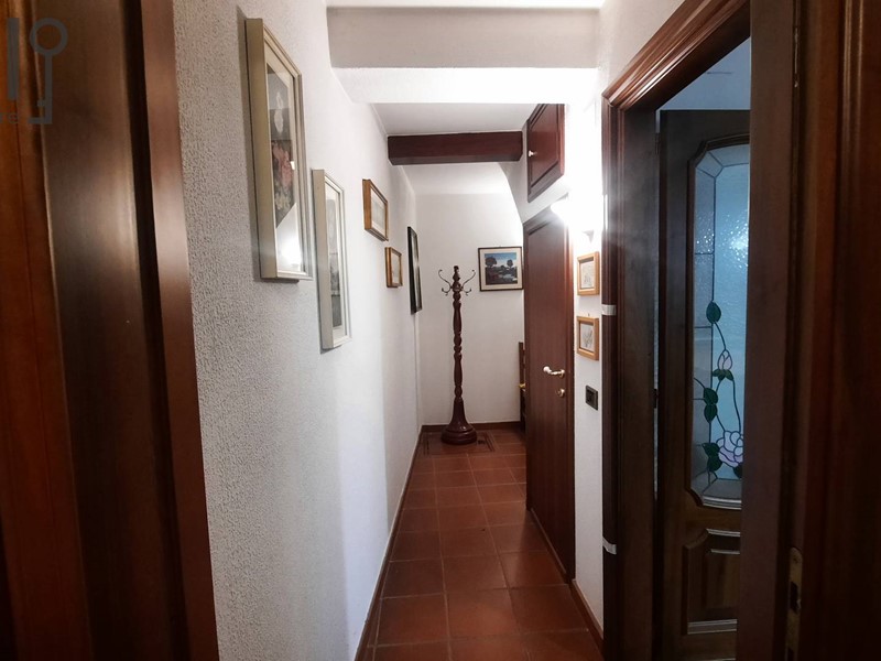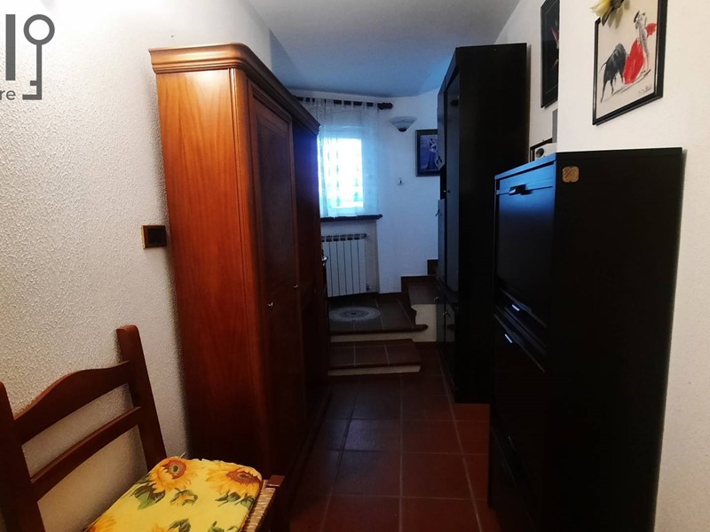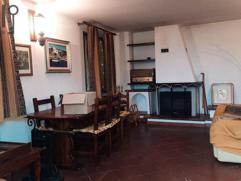 Questa parte è stata ristrutturata con finiture di gusto, porte serigrafate, rosoni nei pavimenti in cotto e infissi doppio vetro in legno a doppia colorazione. Si accede alla zona giorno, dotata di caminetto, da portoncino blidato, e da qui si giunge alla cucina che ha a sua volta una portafinetra per uscire nel cortile esterno. I termosifoni sono in ghisa, ma c'è comunque una pratica stufa a legna. Ancora al piano bagno in ordine, con doccia, dispensa e passaggio al piano superiore tramite scala in cotto, per giungere alla zona notte.