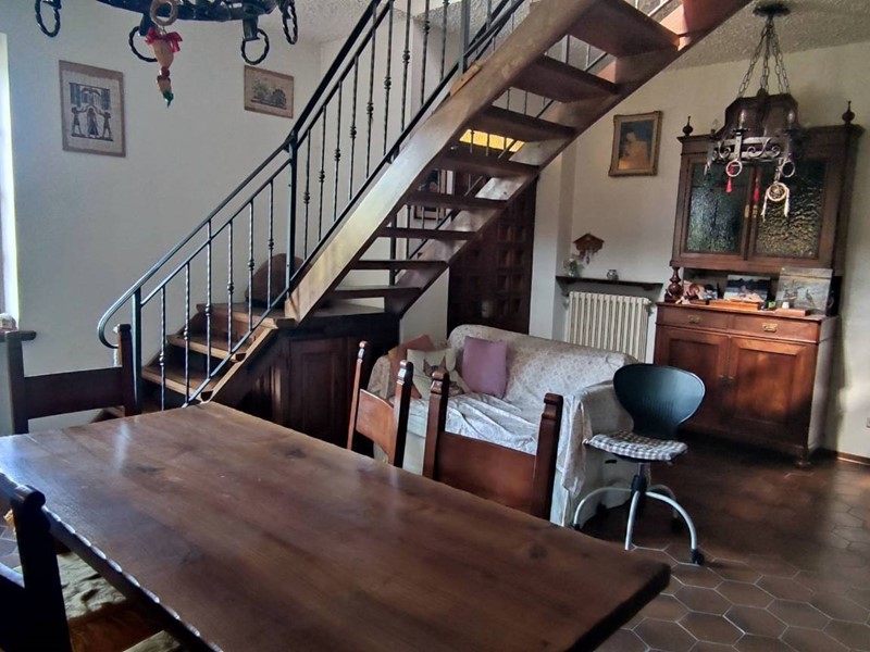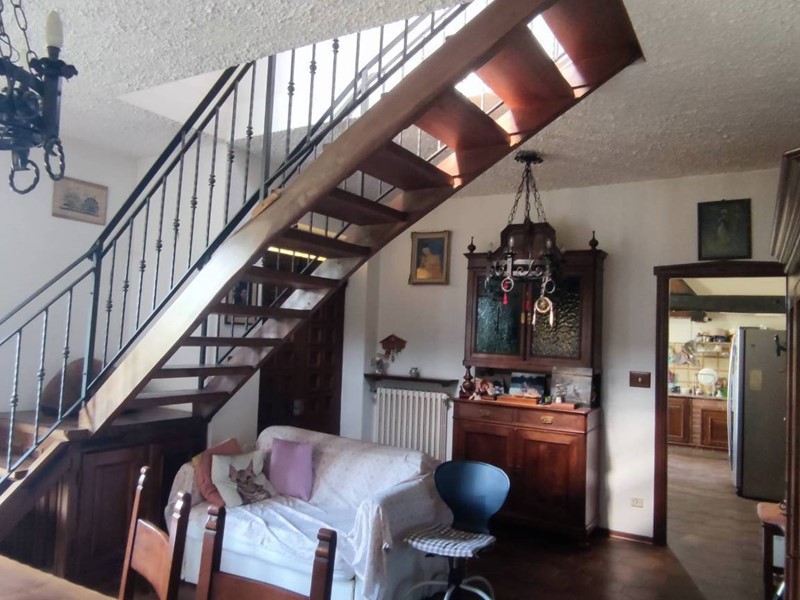 Al piano superiore, raggiungibile dalla scala posta in sala, abbiamo il secondo appartamento in cui manca solo la cucina che al momento è al grezzo, anche se gli attacchi sono presenti. L'accesso si apre su di uno spazio aperto che rimanda a due grandi vani, di cui uno con balcone con vista bellissima sulle colline circostanti e un bagno in ceramica di fattura moderna, con doccia, ancora cucina al grezzo appunto. Qui troviamo un bel tetto in legno a vista e il pavimento in cotto, mentre al piano sottostante abbiamo il parquet nelle camere e piastrelle di ceramica nelle altre zone.