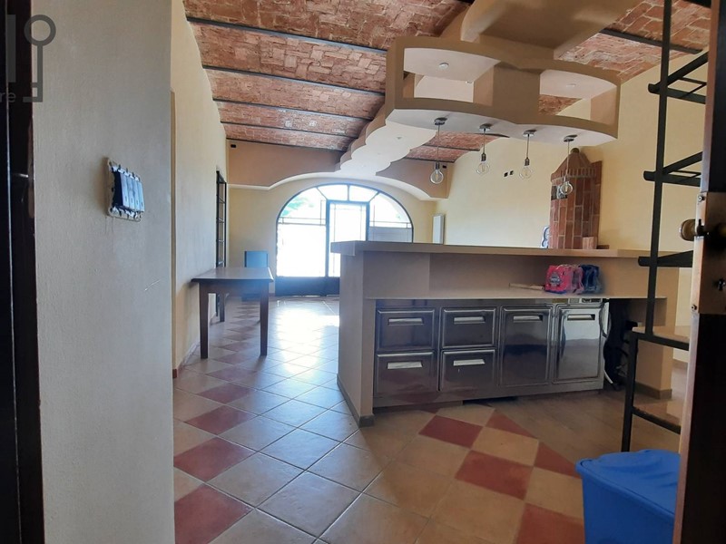 Al piano terreno con ingresso separato, troviamo uno spazioso magazzino adibito a officina, un garage piastrellato per almeno due vetture che a sua volta è collegato a locale panetteria a nuovo con voltini in mattoni, bellissimo camino e forno a legna che scalda il forno dellla cucina professionale a fianco. La cucina/laboratorio, collegata allo spazio per la vendita è attrezzata con utensili professionali, ancora la piano, vano caldaia, da installare, e altre due sale degustazione, una con camino antico molto bello.
