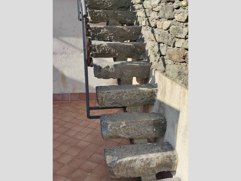 Sul retro cantina moderna collegata tramite una scala di design alla terrazza sovrastante, una ulteriore cantina e un bagno con antibagno e doccia in gres porcellanato. Pavimenti misti cotto e gres, voltini in mattoni. tutto finemente ristrututrato con particolari di pregio.
