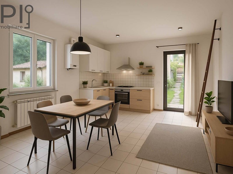 Nel caratteristico centro storico della frazione medievale di Rocchetta, appartamento di recente ristrutturazione circondato, da 3 lati, da giardino di proprietà.