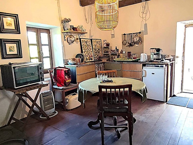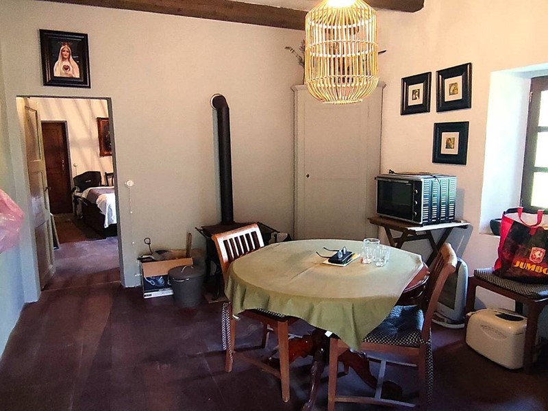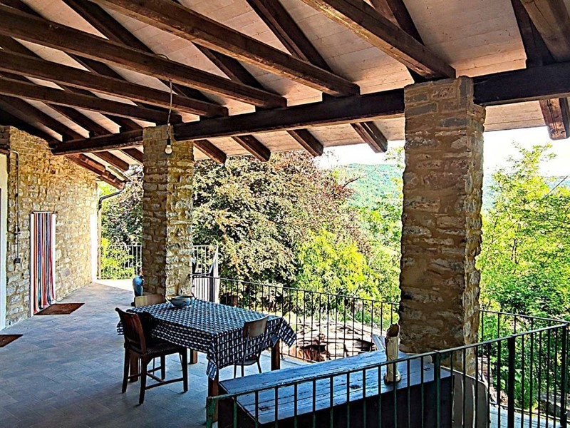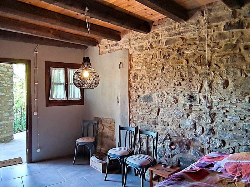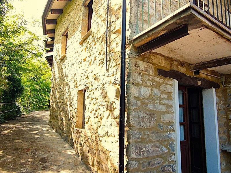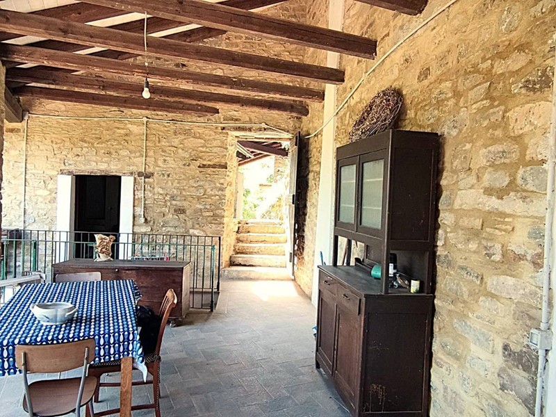 Il primo edificio che troviamo facente parte del complesso è un fabbricato in pietra con pollaio, porticato aperto su due livelli, una stalla ed un bel fienile al piano primo con e solette in assito di legno nuove. Procediamo verso il corpo abitativo principale al quale accediamo da un bel portone in legno, ci accoglie ampia terrazza coperta dove godere dell'aria aperta tutto l'anno. Da qui accesso ad un primo locale abitativo con soggiorno, camera, bagno. Il tutto ristrutturato con particolari originali e mantenendo intatto il sapore dei luoghi.