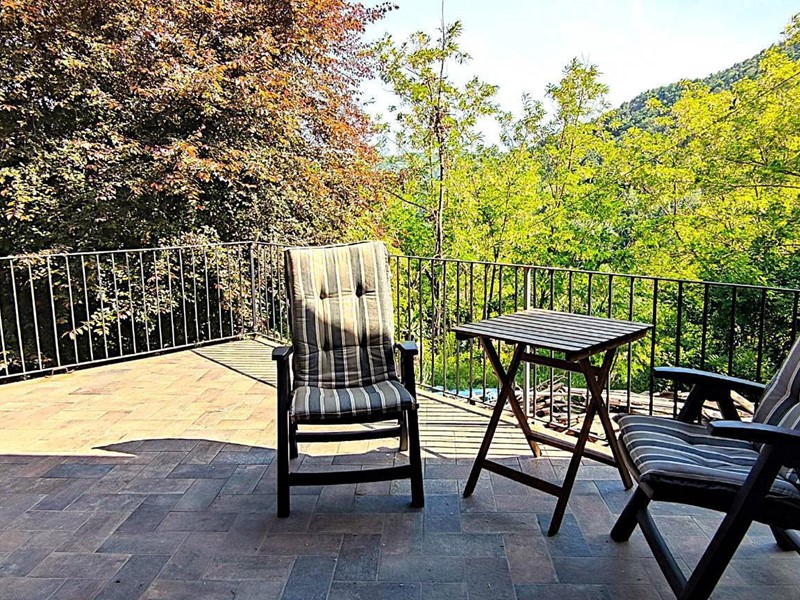 Al piano terreno, al quale accediamo sia la stradina indipendente sia da scala, troviamo un locale a magazzino composto di due vani, un forno a legna, un ulteriore locale a magazzino un tempo uso cantina. Un ulteriore fabbricato in pietra - ancora da ristrutturare ed a valle del corpo principale - completa la proprietà.