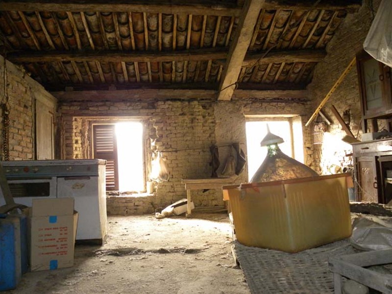 Sul lato nel retro della casa bellissima e grande cantina in mattoni con voltini in mattoni pieni. No riscaldamento nella parte abitativa, particolari come voltini in mattoni che sono stati intonacati negli anni '60. Impianto elettrico risalente all'ultima ristrutturazione anni '70/'80. Porte datate e finestre in legno vetro singolo. Il tetto (in coppi) ha la grande orditura ancora in buono stato, i listelli sono ancora discretamente buoni e non vi sono infiltrazioni. 2 pozzi che raccolgono acqua di gronda a lato casa.