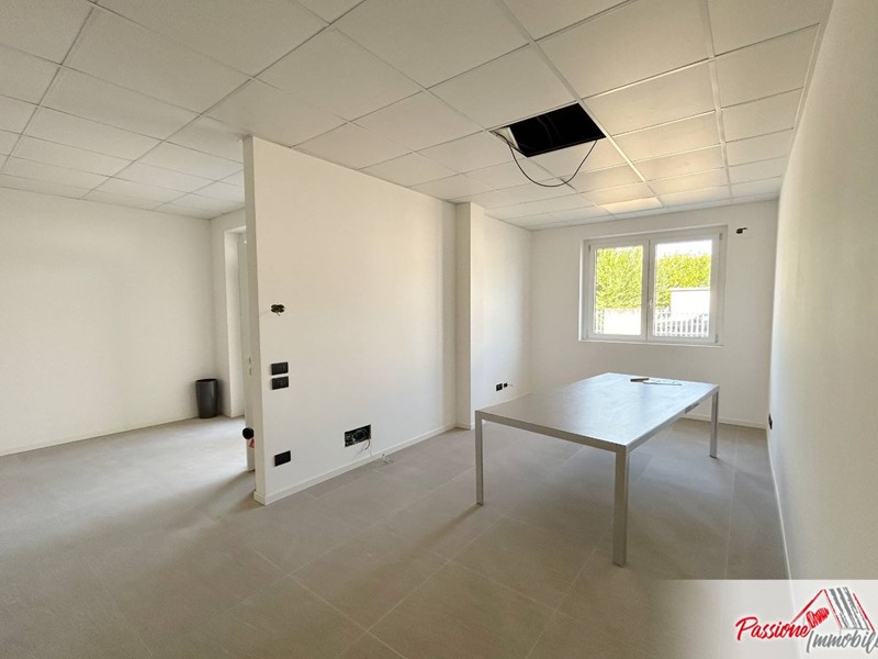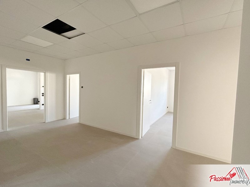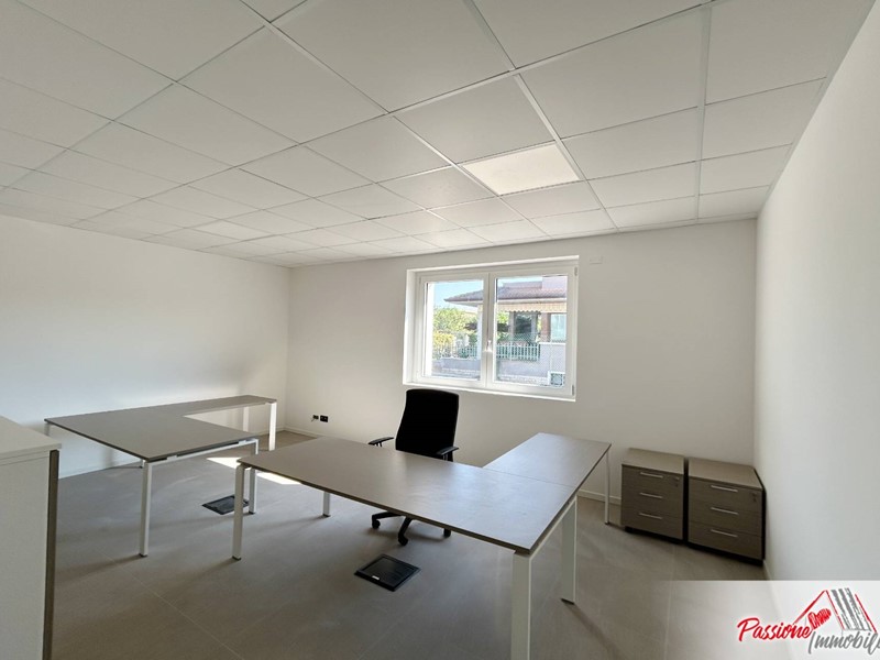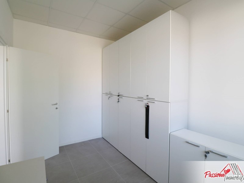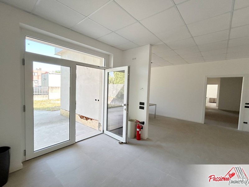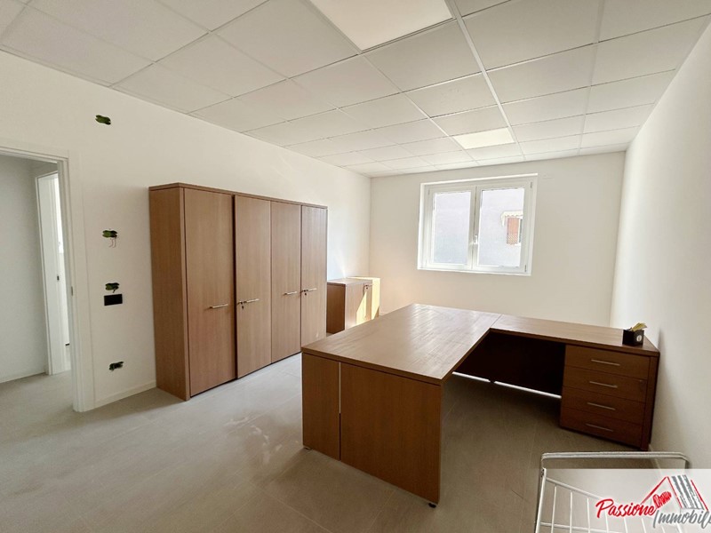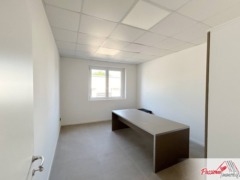 Al suo interno il capannone è sprovvisto di divisori e colonne ed è dotato di doppio ingresso carraio dal cortile privato; l'ufficio (comunicante internamente con il magazzino e da ultimare degli impianti) si compone da sala reception/accoglienza in ingresso, sala d'attesa, 4 uffici, sala riunioni, 2 archivi, ripostiglio, doppi servizi dedicati alla clientela e ulteriore servizio/spogliatoio per il personale