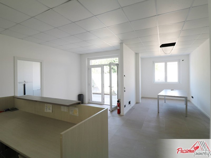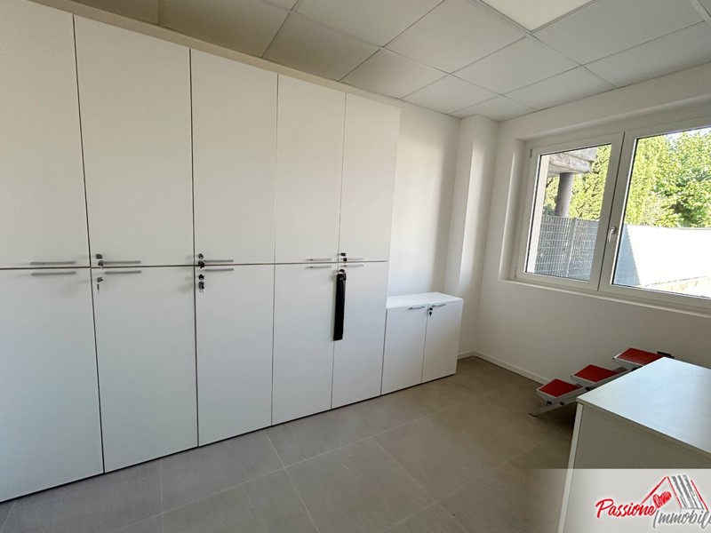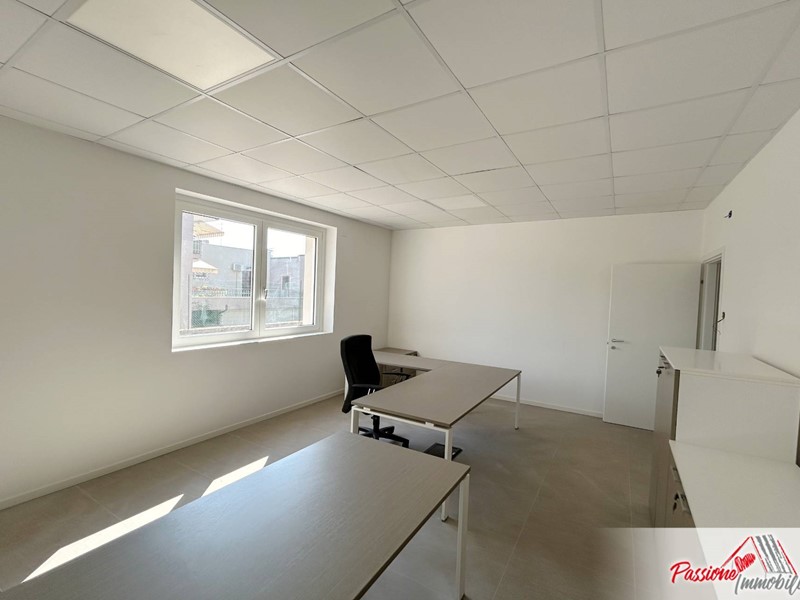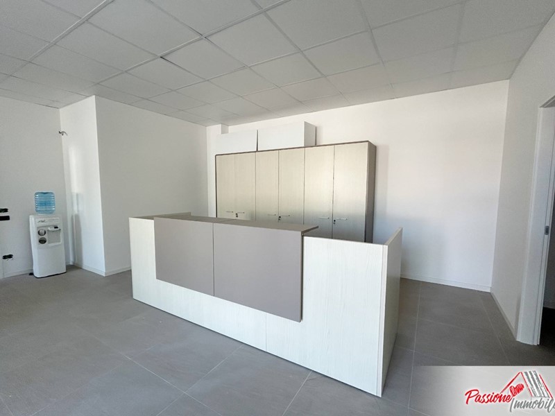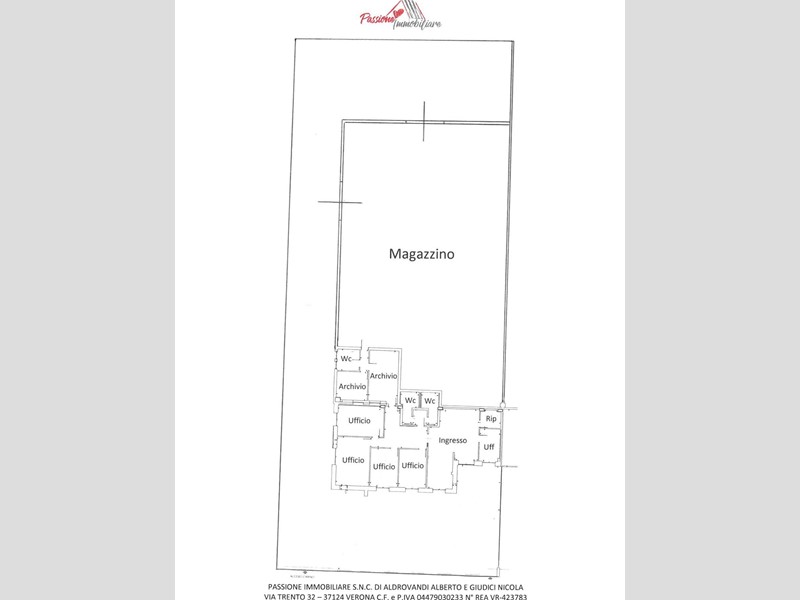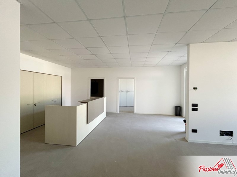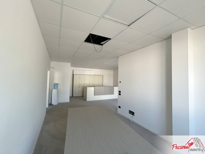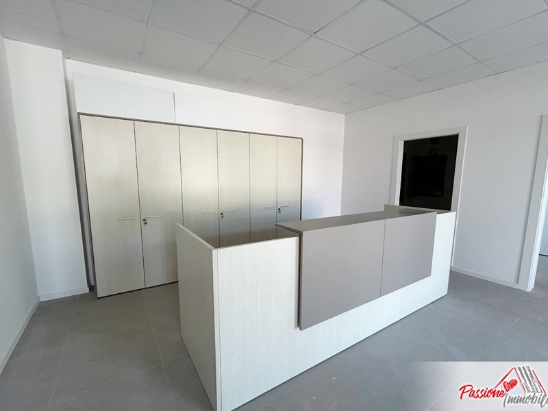 Al suo interno il capannone è sprovvisto di divisori e colonne ed è dotato di doppio ingresso carraio dal cortile privato; l'ufficio (comunicante internamente con il magazzino e da ultimare degli impianti) si compone da sala reception/accoglienza in ingresso, sala d'attesa, 4 uffici, sala riunioni, 2 archivi, ripostiglio, doppi servizi dedicati alla clientela e ulteriore servizio/spogliatoio per il personale