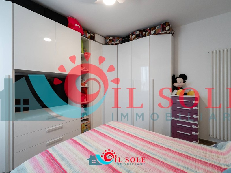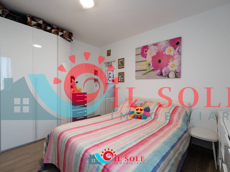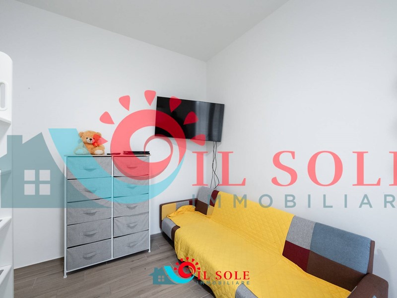 Composto da : ingresso, cucina abitabile molto luminosa, una camera da letto matrimoniale, una camera singola con piccolo balcone e un bagno con doccia.