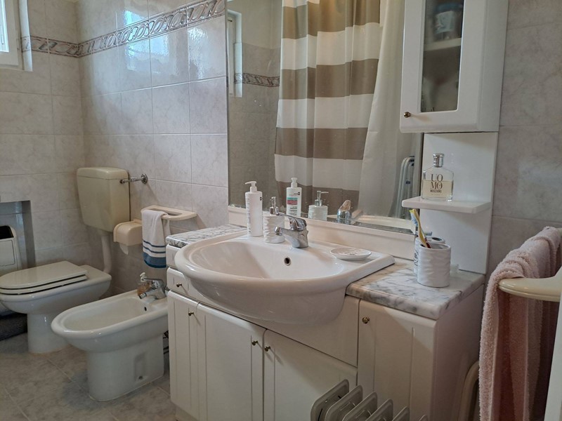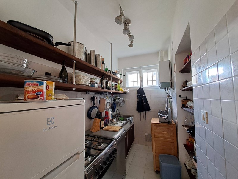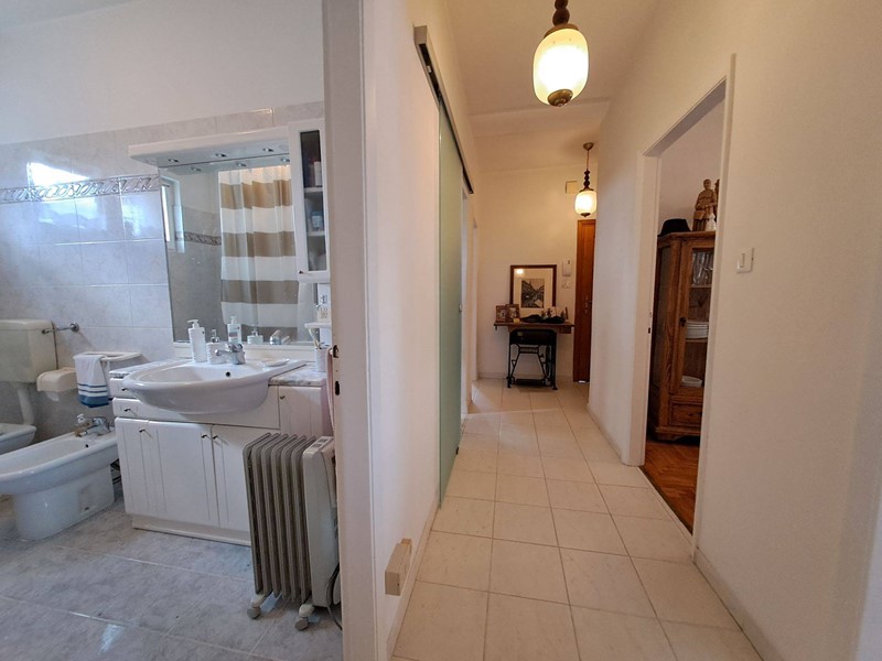 L'appartamento, situato al primo piano di un edificio costruito nel 1962, è dotato di soggiorno luminoso e spazioso, con porta-finestra dalla quale si accede alla terrazza che si distribuisce lungo i 2 lati dell'appartamento.