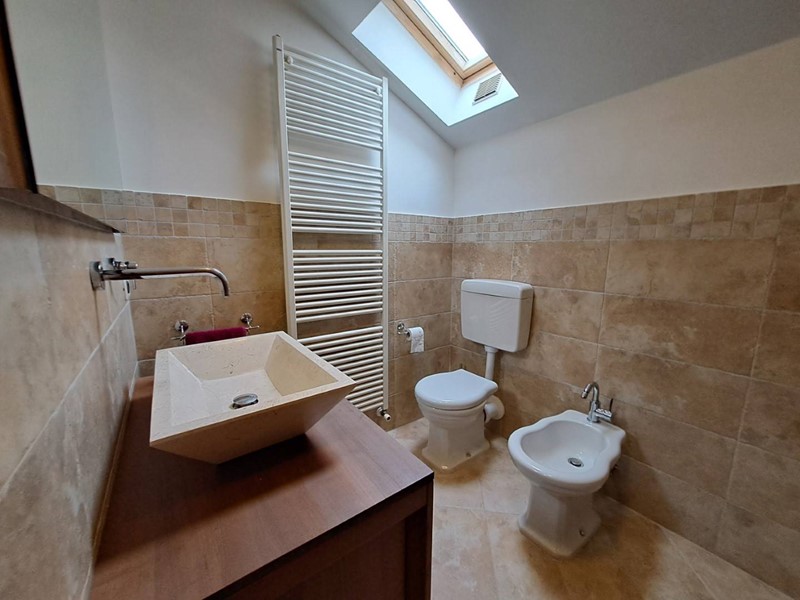 In posizione semicentrale, zona servita e comunque tranquilla, in palazzina di sole tre unità abitative si propone appartamento al secondo e ultimo piano composto da ingresso, ampio soggiorno con angolo cottura, due camere da letto doppie, doppi servizi, ripostiglio e terrazza. Completano l'investimento l'autorimessa al piano terra e il posto macchina coperto in edificio adiacente. E' presente inoltre un giardino condominiale. Il riscaldamento è autonomo a metano e nell'appartamento è presente inoltre una stufa a pellet. L'appartamento è molto curato ed accogliente grazie alle particolari e ricercate finiture e agli arredi completamente realizzati in legno.