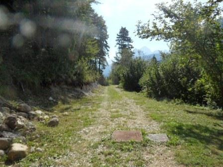 In posizione soleggiata, con prato e bosco di proprietà', sulla pista ciclabile e panoramico, edificio da ristrutturare di 180 mq. indicativi, facilmente raggiungibile anche con l'auto.