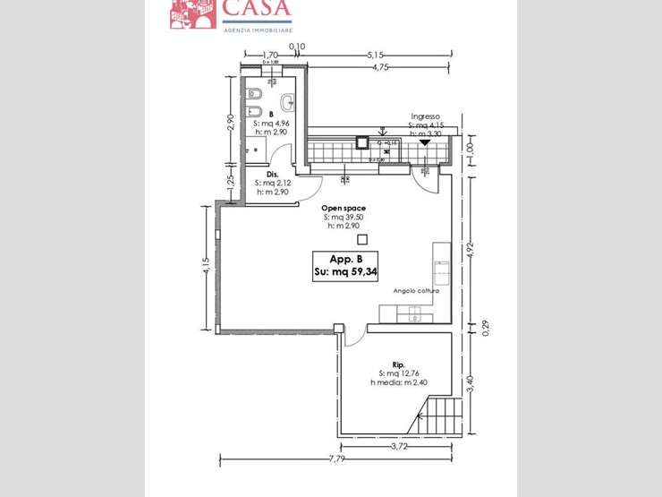 La zona giorno è composta da un ampio soggiorno con angolo cottura a vista, ideale per trascorrere piacevoli momenti in compagnia, la zona notte è composta da una camere matrimoniale e un bagno con sanitari sospesi e box doccia e ripostiglio.