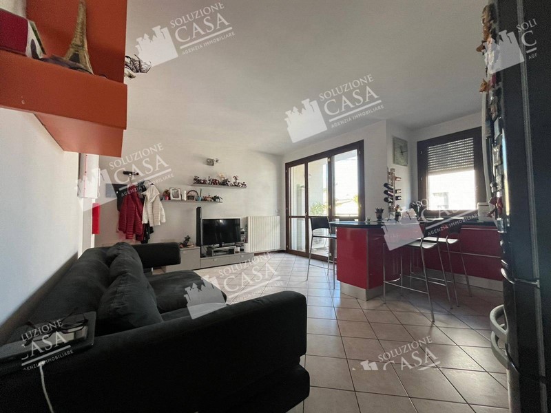 La disposizione degli ambienti prevede un soggiorno con angolo cottura con acceso diretto al balcone coperto, due camere da letto ed un bagno.