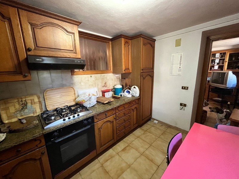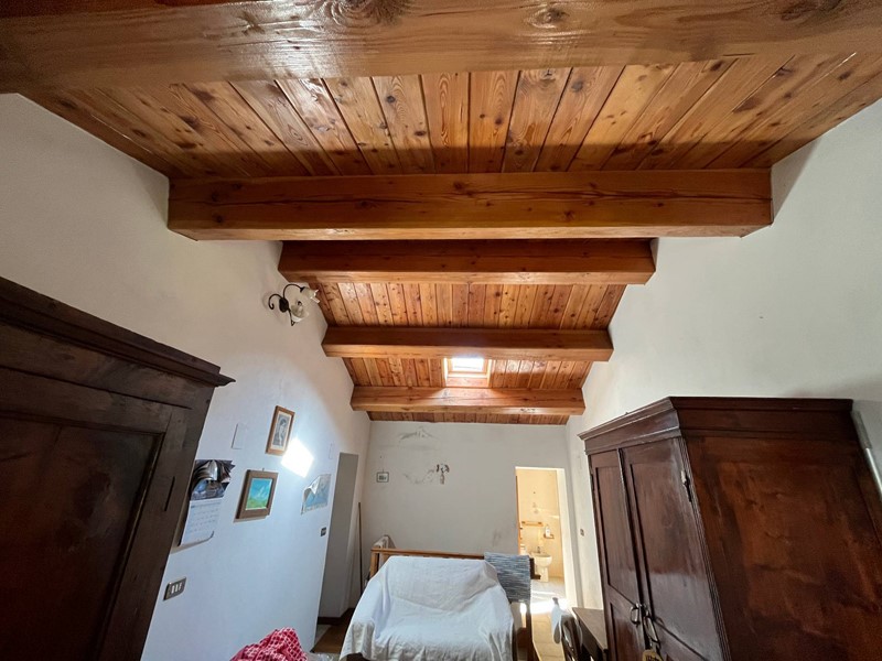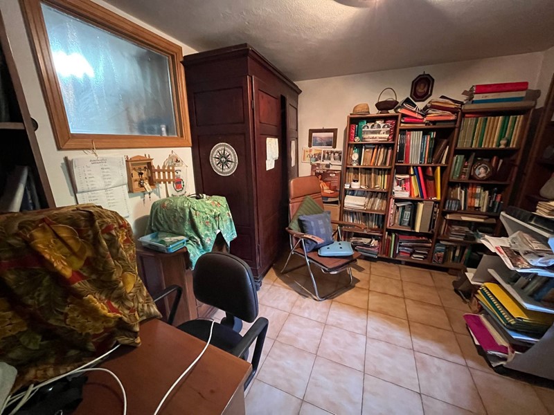 Il piano terra presenta un monolocale con angolo cottura, divano letto matrimoniale, bagno, vano tecnico con caldaia e comandi per attivare l'acqua calda dei pannelli solari, sauna, magazzini; il piano rialzato è composto da cucina, tinello con termocamino, sala, studio; il piano superiore è interamente deidcato alla zona notte, dispone di quattro camere da letto e bagno finestrato con vasca.