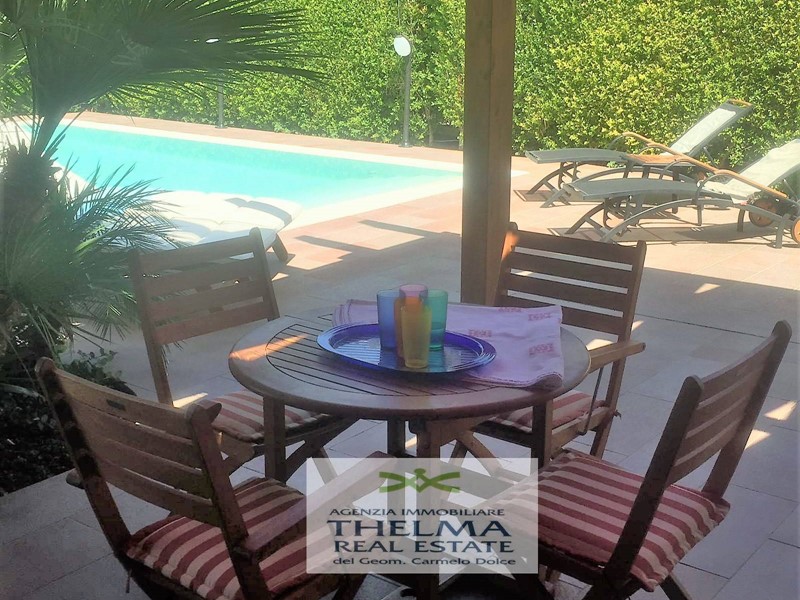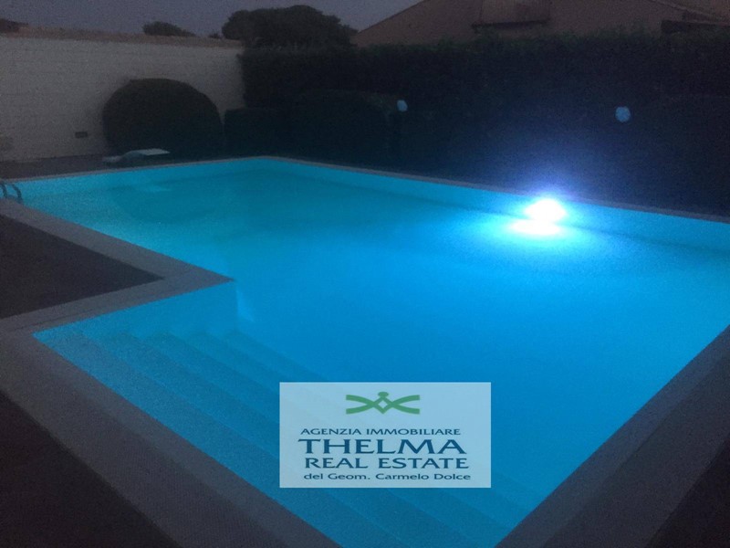VENDESI: Villetta bifamiliare con piscina privata, parcheggio e giardino. Si sviluppata su due elevazioni fuori terra, ed è così composta: al Piano terra ingresso-soggiorno-pranzo-cucina (unico vano), disimpegno, due camere da letto, bagno-doccia, scala di accesso al primo piano e ripostiglio sottoscala. Al Piano primo, una camera da letto 2 pax, WC e terrazzo. Cucina-pranzo-pergolato esterna, barbecue, veranda, lavanderia, doccia, piscina, solarium.