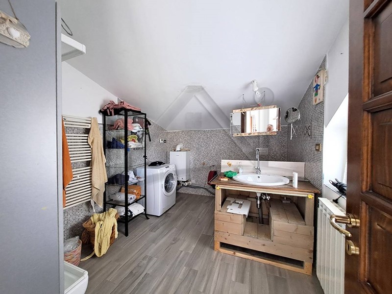 Immersa nel verde, a soli 16 chilometri dalla Città di LAquila, proponiamo in vendita una casa singola con giardino di recente costruzione. Limmobile sito nel Comune di SantEusanio Forconese è così composto: ingresso al piano terra su ampio e luminoso soggiorno con termocamino, bagno con aspirazione forzata e cucina abitabile con porta-finestra; al piano primo troviamo due camere di una la matrimoniale mansardata, la camera singola ed il bagno. Completa la proprietà una grande tettoia adiacente il fabbricato ed il patio esterno.