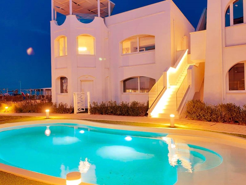La residenza, di nuova costruzione, é sita al piano terreno di un piccolo villino singolo di appena due unità immobiliari. Realizzato con rifiniture veramente di alto pregio come pavimentazione in parquet e gres porcellanato, infissi di alta qualità con oscuramento cristalli liquidi, impianto di climatizzazione caldo freddo a pavimento, predisposizione con sistema domotica di controllo a distanza degli impianti dell'alloggio.