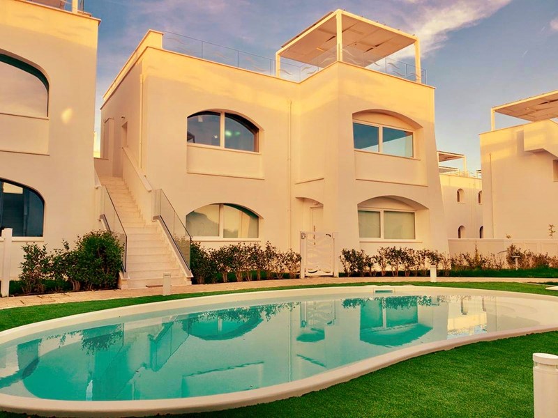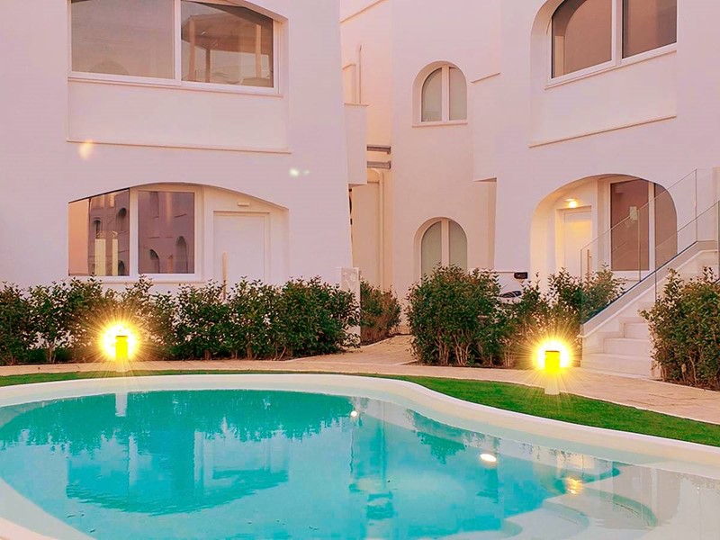 La residenza, di nuova costruzione, é sita al piano primo ( corrispondente all'ultimo piano ) di un piccolo villino singolo di appena due unità immobiliari ( l'altra si trova al piano terreno ) e dispone di ingresso completamente indipendente. Realizzato con rifiniture veramente di alto pregio come pavimentazione in parquet e gres porcellanato, infissi di alta qualità, impianto di climatizzazione caldo freddo, predisposizione con sistema domotica di controllo a distanza degli impianti dell'alloggio.