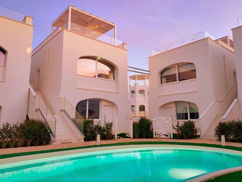 La residenza, di nuova costruzione, é sita al piano primo ( corrispondente all'ultimo piano ) di un piccolo villino singolo di appena due unità immobiliari ( l'altra si trova al piano terreno ) e dispone di ingresso completamente indipendente. Realizzato con rifiniture veramente di alto pregio come pavimentazione in parquet e gres porcellanato, infissi di alta qualità, impianto di climatizzazione caldo freddo, predisposizione con sistema domotica di controllo a distanza degli impianti dell'alloggio.