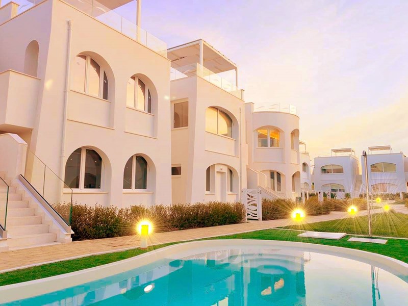 Appartamento per civile abitazione sito al piano primo ( corrispondente all'ultimo piano ), delle dimensioni di 93 m² circa, composto da ingresso su ampio soggiorno con angolo cottura volendo isolabile, due camere da letto matrimoniali, due bagni forniti entrambi di finestra, corridoio nel reparto notte. L'appartamento è inoltre fornito una meravigliosa terrazza privata al piano superiore delle dimensioni di 93 mq circa, con vista del mare, allestita con cucina all'aperto e gazebo ombreggiante.