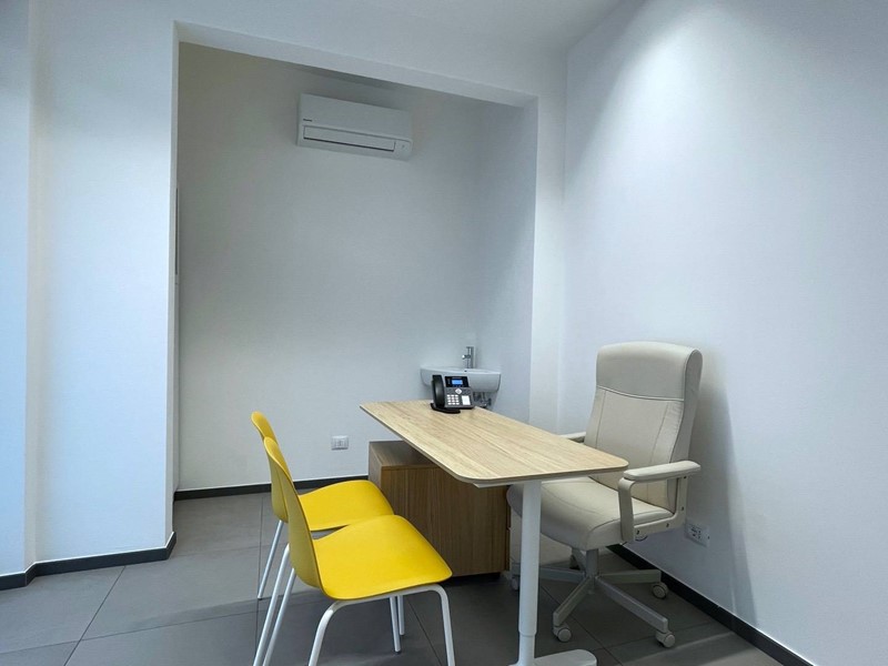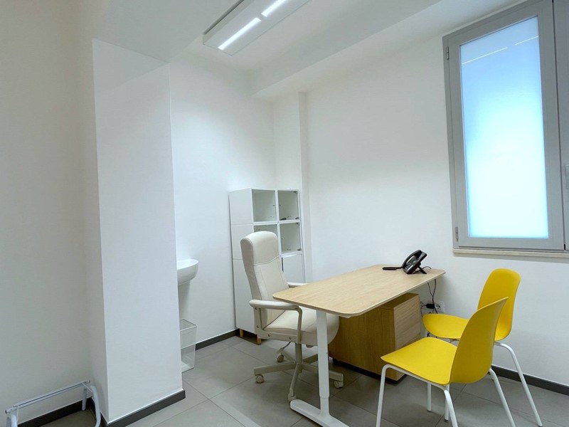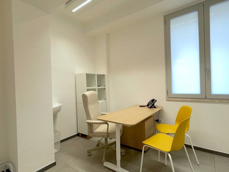 Ufficio ambulatoriale delle dimensioni di circa 8 mq circa, inserito all'interno di un ambulatorio medico fornito di ingresso con reception, sala d'attesa, bagno personale e secondo bagno per clientela (anche diversamente abile). Completo anche di arredamento, frigo per il mantenimento dei farmaci, telefono con centralino telefonico. Di nuova realizzazione si presenta in perfette condizioni, con climatizzazione interna completa e videosorveglianza.