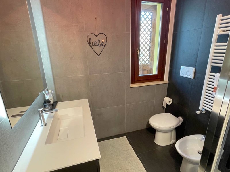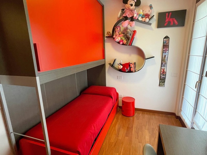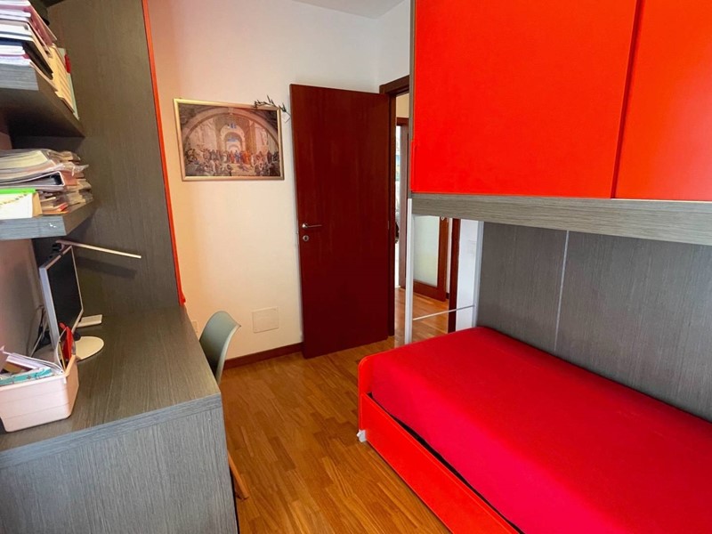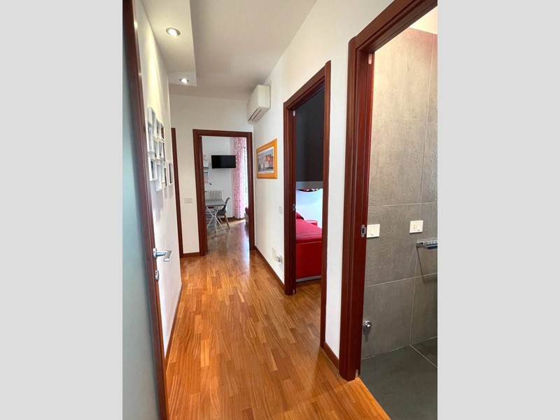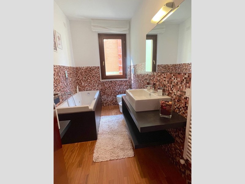 Ottimo stato con pavimentazione in gres nel reparto giorno e parquet nella zona notte, climatizzazione, impianto di allarme, infissi in legno provvisti di vetri termici e persiane in alluminio.