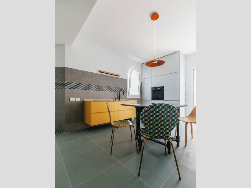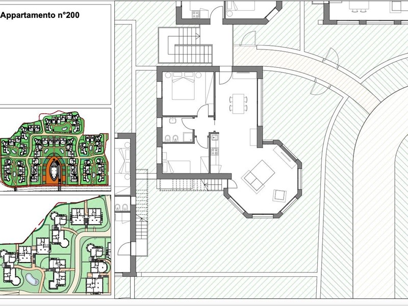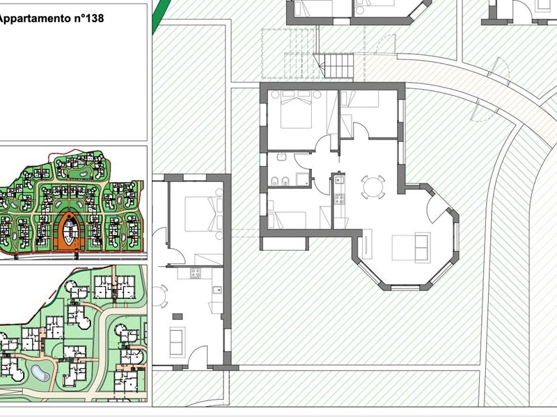 Piano terreno delle dimensioni di 78 m² circa, composto da ingresso su soggiorno con angolo cottura, sala da pranzo in vetrata, due camere da letto ( una matrimoniale ed una singola), bagno con doccia e finestra.