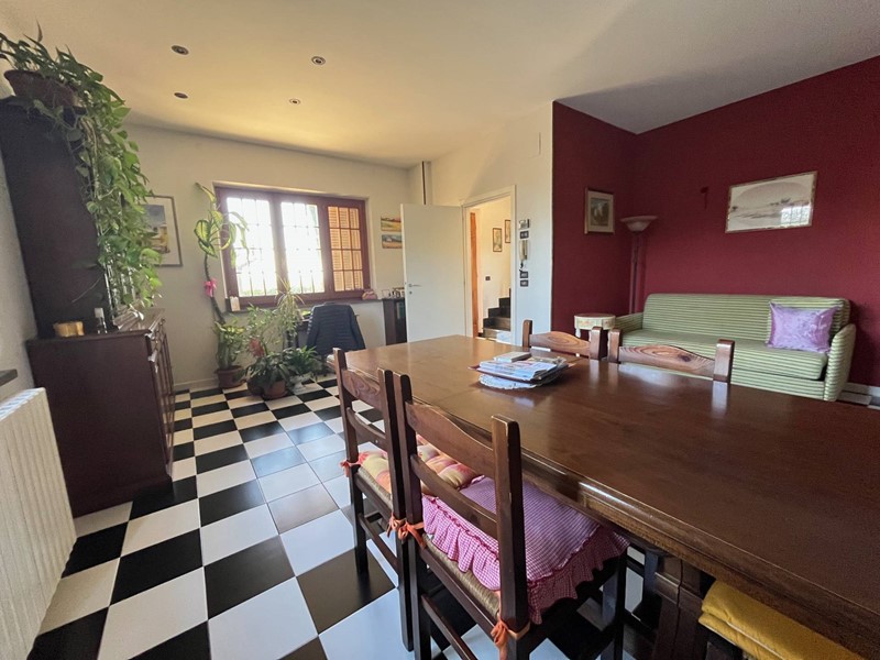 al piano terra da ingresso su disimpegno, ampio salone doppio con angolo cottura, bagno di servizio, ripostiglio oltre scala di accesso al piano superiore;