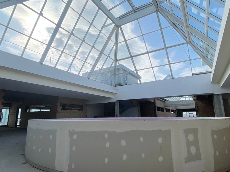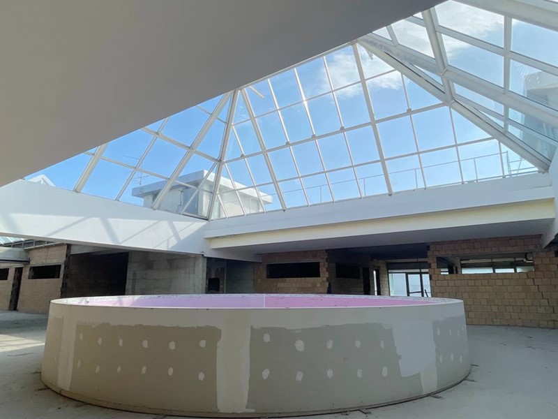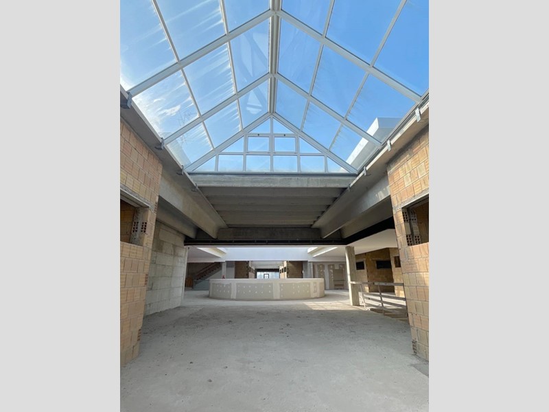 Lunità immobiliare, attualmente allo stato grezzo avanzato, è costituita da diversi lotti modulabili, con ingressi indipendenti e collegati da ampi corridoi centrali. Esternamente ledificio è già ultimato e dotato di ampie vetrate; allinterno sono presenti alcuni divisori, ma mancano ancora le rifiniture, i massetti, le pavimentazioni e gli impianti.