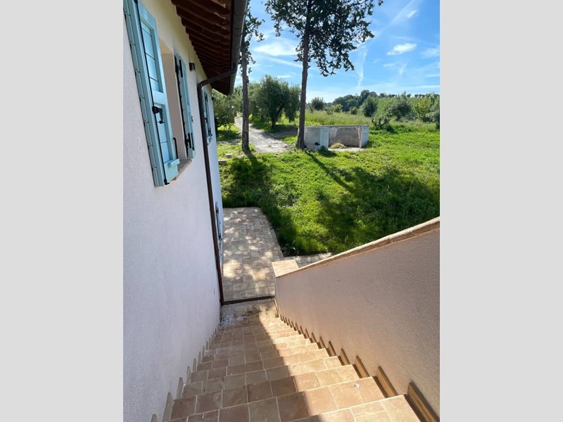 Il collegamento tra i 2 livelli è assicurato sia da scala interna sia dalla scala esterna, tipica dei casali marchigiani.