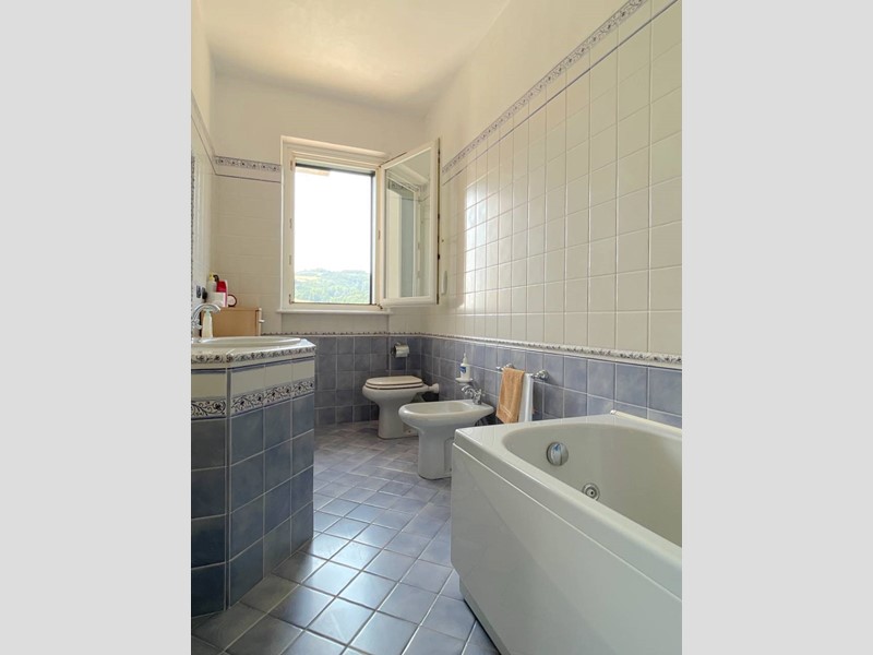 PIANO SEMINTERRATO: appartamento di circa 100 mq, composto da graziosa taverna rustica con salone, cucina open space, camino e forno a legna, piccola cantina/ripostiglio con finestra, due camere da letto (una matrimoniale ed una ampia singola) un bagno con lavanderia/antibagno. L'appartamento ha accesso indipendente dal piano strada (piano terra) ed è collegato internamente con un grande garage di circa 40 mq, capace di ospitare comodamente due grandi autovetture e altri mezzi a due ruote, oltre che scaffalature. L'appartamento è collegato internamente al piano superiore da una scala in travertino. Esternamente, l'appartamento gode di una ampia corte pavimentata con due posti auto, di un ampio loggiato e di in bel giardino piantumato sul lato sud-est. La rifiniture sono di ottimo livello in stile rustico, impianto di riscaldamento autonomo, finestre in legno con doppi vetri termici e vetro di sicurezza antisfondamento per la porta-finestra di accesso.