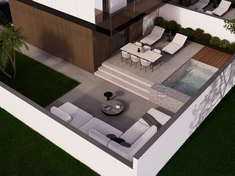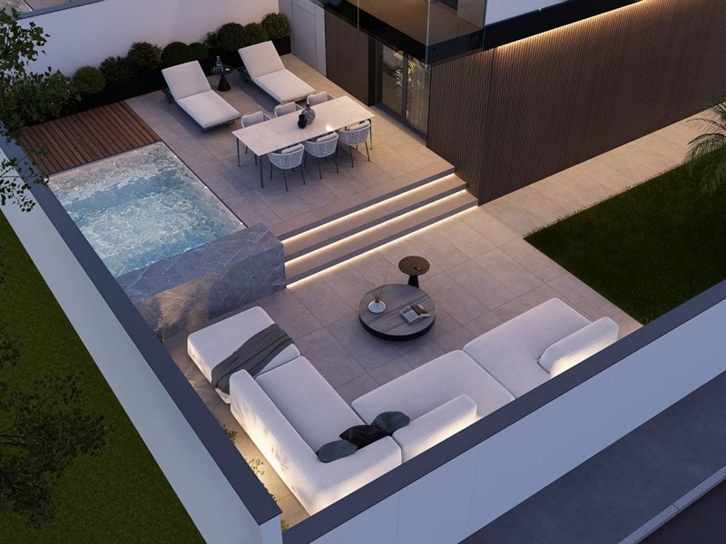 Ampie aree esterne: giardini privati, terrazzi panoramici e la possibilità di realizzare la tua piscina personale.
