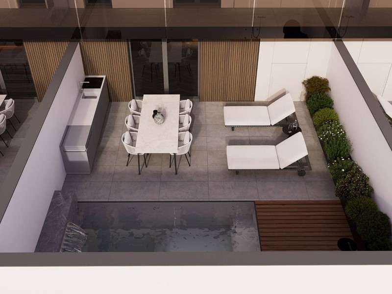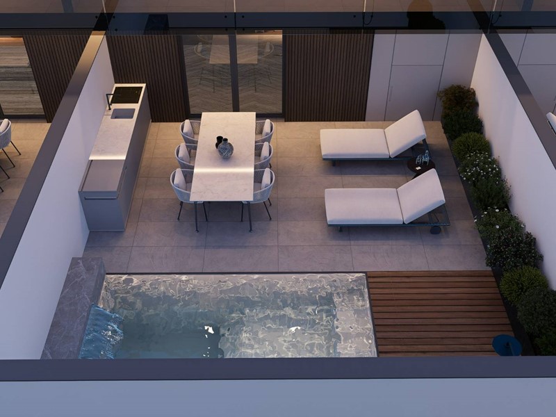 Ampie aree esterne: giardini privati, terrazzi panoramici e la possibilità di realizzare la tua piscina personale.