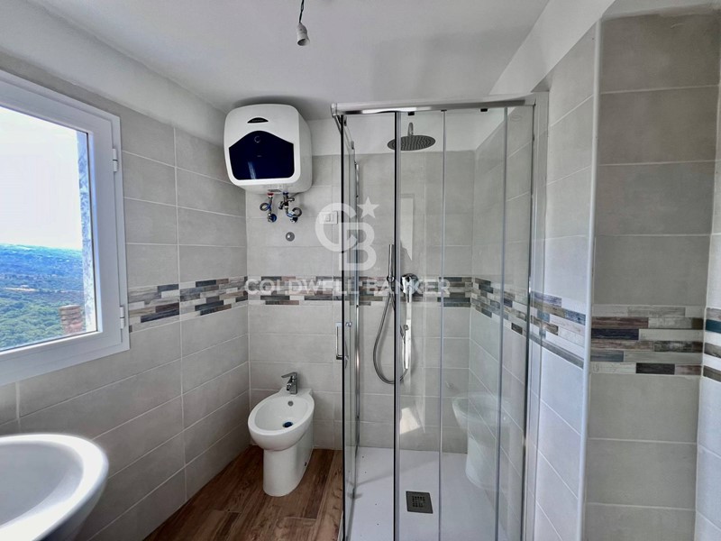 Al piano rialzato si trova un bagno con doccia di recente ristrutturazione e la predisposizione per un secondo bagno al primo piano. Qui, la zona notte comprende due camere, di cui una di generose dimensioni con balcone vista mare, e un ampio terrazzo a livello, ideale per momenti di relax.