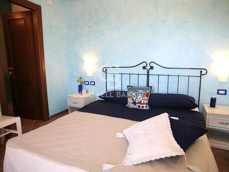 La villa si sviluppa su due livelli, al piano terra abbiamo tre camere con bagno, sala ristorante, reception, cucina, altri due bagni e ripostiglio oltre ad un portico ideale per trascorrere dei momenti di relax; al primo piano altre tre camere con bagno.