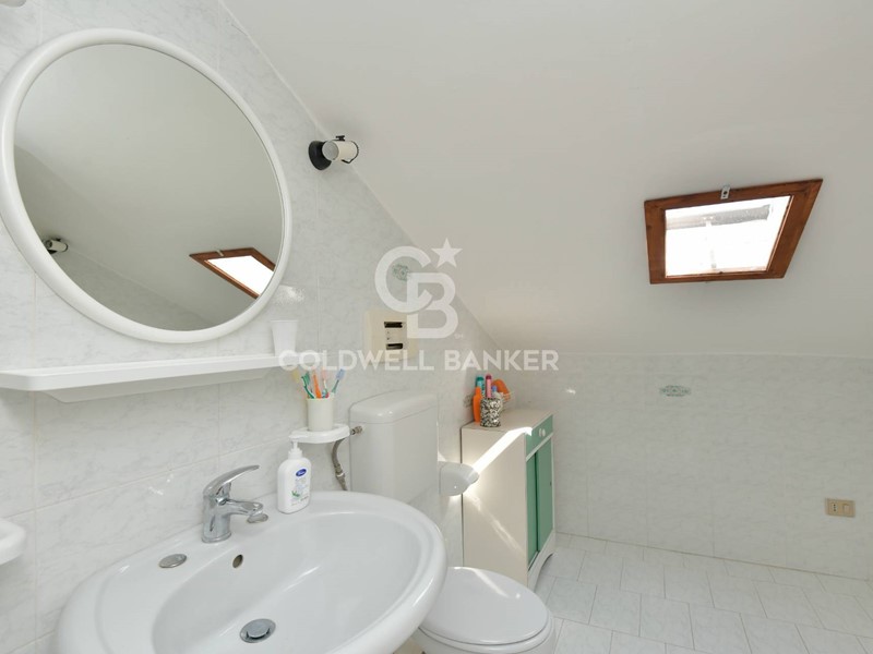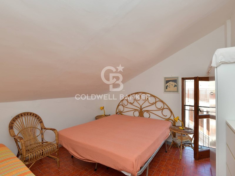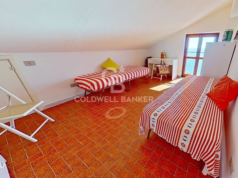 Al secondo livello, accessibile tramite scala a chiocciola interna, si trova lappartamento mansardato, composto da una spaziosa camera matrimoniale con bagno privato, due camere con vista mare dotate di locali deposito nella parte bassa del sottotetto, e un ulteriore bagno con doccia.