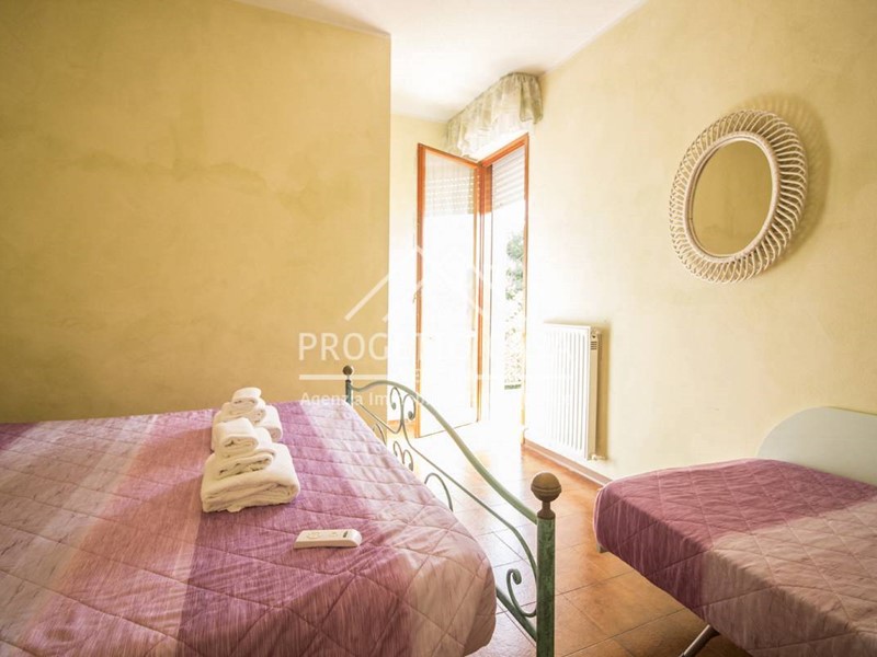 L'immobile è una villa bifamiliare con doppio ingresso ovvero tramite cancello pedonale o tramite cancello carrabile, che permette di accedere al giardino della casa con la propria autovettura. Il giardino è ampio e abbraccia la casa su tre lati, qui troviamo oltre che la possibilità di pranzare / cenare all'esterno, una comoda zona lavanderia e una doccia estiva. La casa è un unità unica, ma attualmente è organizzata in due appartamenti. Entrando al piano terra della casa troviamo il primo appartamento una sala di buone dimensioni, una cucina abitabile, due camera da letto matrimoniali e un primo bagno con doccia. In maniera indipendente tramite un'altro ingresso, accediamo al piano primo dove è presente una sala - cucina con terrazza abitabile, il bagno finestrato con doccia e attacco per lavatrice, due camere da letto ampie e matrimoniali con accesso ad altre due terrazze. La casa si presente in buone condizioni ed è quindi abitabile.