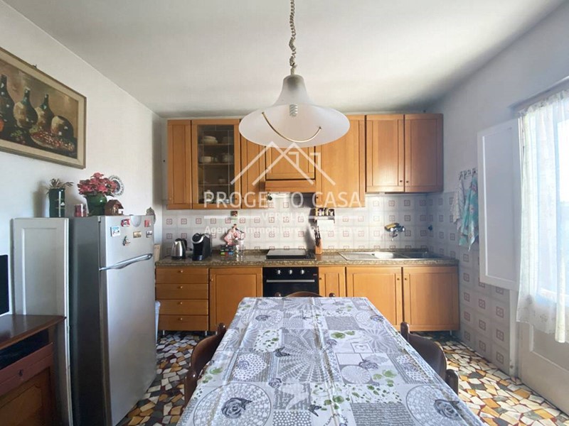 La casa come detto è posta al primo e ultimo piano dello stabile, dove sono presenti due appartamenti al piano terra e un'altro appartamento al primo piano. Con l'appartamento al primo piano, l'immobile dispone di una zona al piano terra in comune dove poter ricoverare bici/scooter o parcheggiare un'auto. Per accedere alla casa si accede al primo piano dove troviamo l'abitazione vera e propria, varcato l'ingresso si accede alla zona giorno che è composta da una zona tinello - cucina con balcone. La zona notte invece ospita due camere da letto entrambe ampie e matrimoniali, il bagno ha subito un recente rimodernamento e dispone di doccia, oltre che essere finestrato.