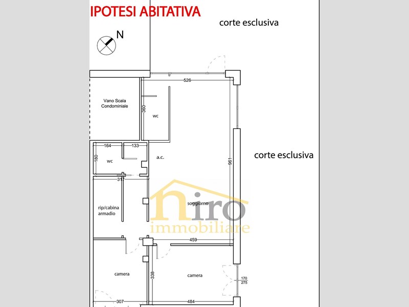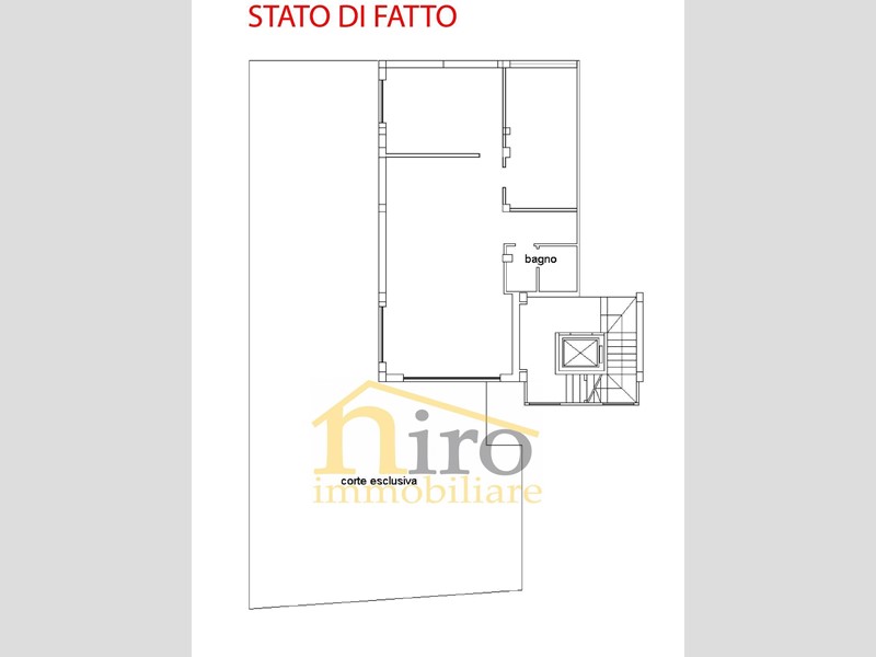L'immobile si presta ad una tipologia abitativa ( vedi planimetria ipotesi allegata) di un trilocale con ingresso indipendente, soggiorno con angolo cottura, due camere da letto, cabina armadio/ripostiglio, due bagni.