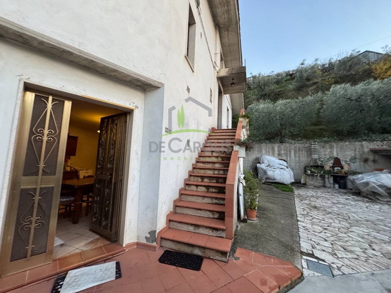 La proprietà è così composta: ingresso dalla strada principale con cancello e recinzione, casa singola attualmente divisa in due unità immobiliari con entrambi ingresso indipendente, ampia rimessa attrezzi/garage, corte perimetrale a servizio dell'abitazione e c/a 1000 mq di terreno agricolo coltivato con splendido uliveto già in produzione.