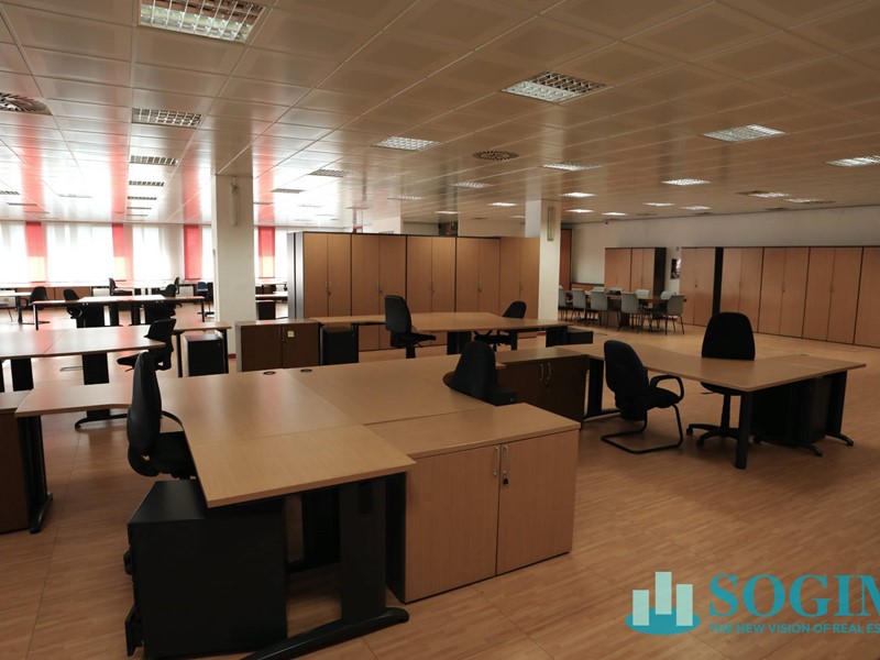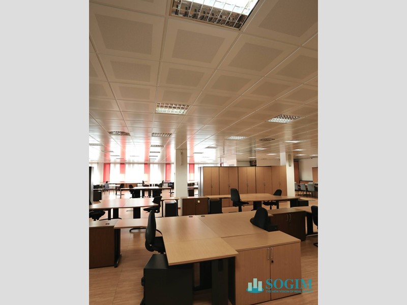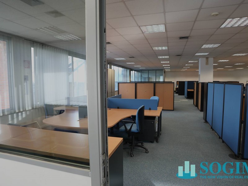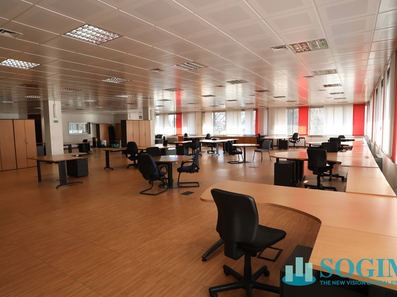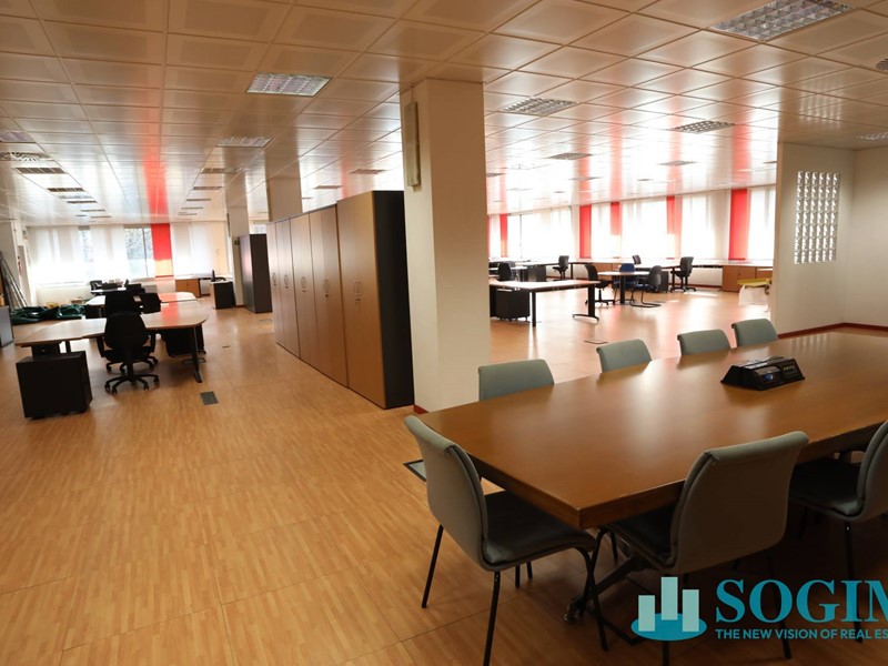 Uffici composti da due unità open space di mq. 520 e mq. 440 entrambe comunicanti ad una hall centrale d'ingresso, il tutto posto al piano terra di un centro direzionale. Pavimento flottante, impianto riscaldamento/raffrescamento centralizzato, impianto fonia/dati.