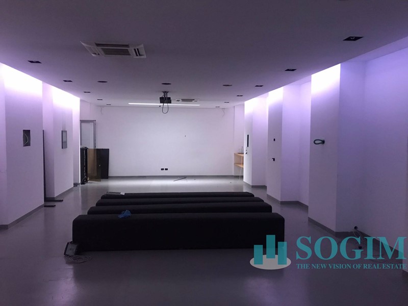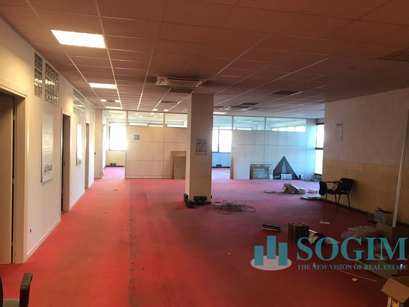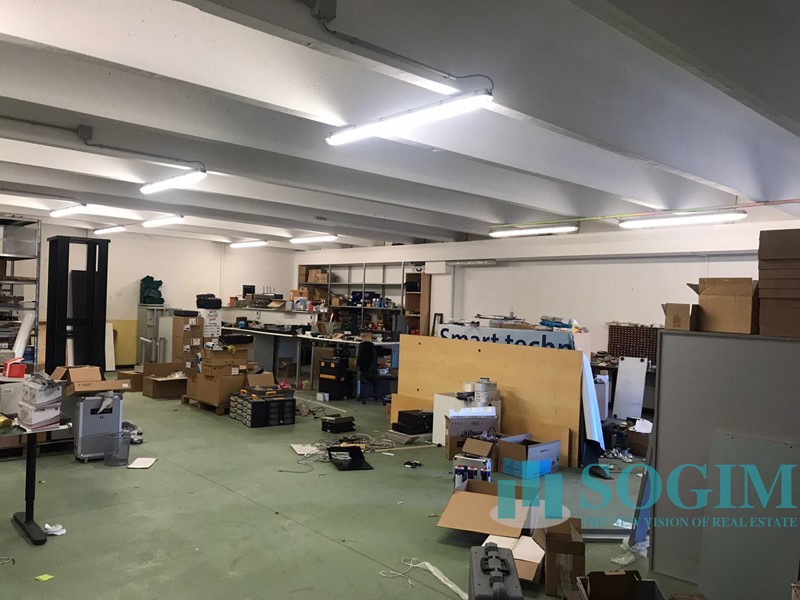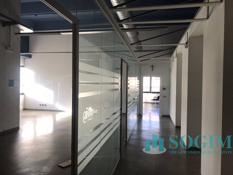 P.1.: ampi locali destinati a uffici, sale riunioni, show room e deposito di circa 600 mq. h. 3 m., presenti doppi servizi igienici. L'intero piano è dotato di impiantistica elettrica, raffrescamento e riscaldamento in pompa di calore e cablaggi.