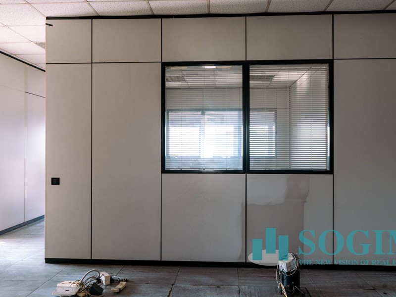 L'immobile è diviso in vari ambienti tramite pareti mobili e armadiature.