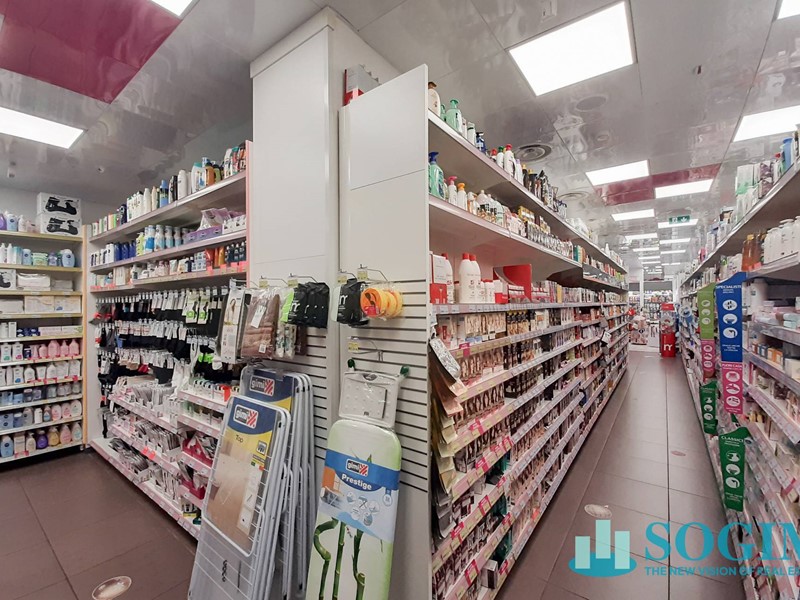 P.T.: negozio di altezza 4 m. dotato di n. 10 vetrine con superficie di vendita di circa 290 mq. dotato di servizi/spogliatoi privati e servizi pubblici attrezzati per disabili. Piccolo magazzino di circa 45 mq. asservito da montacarichi per il carico/scarico merci collegato al piano interrato;