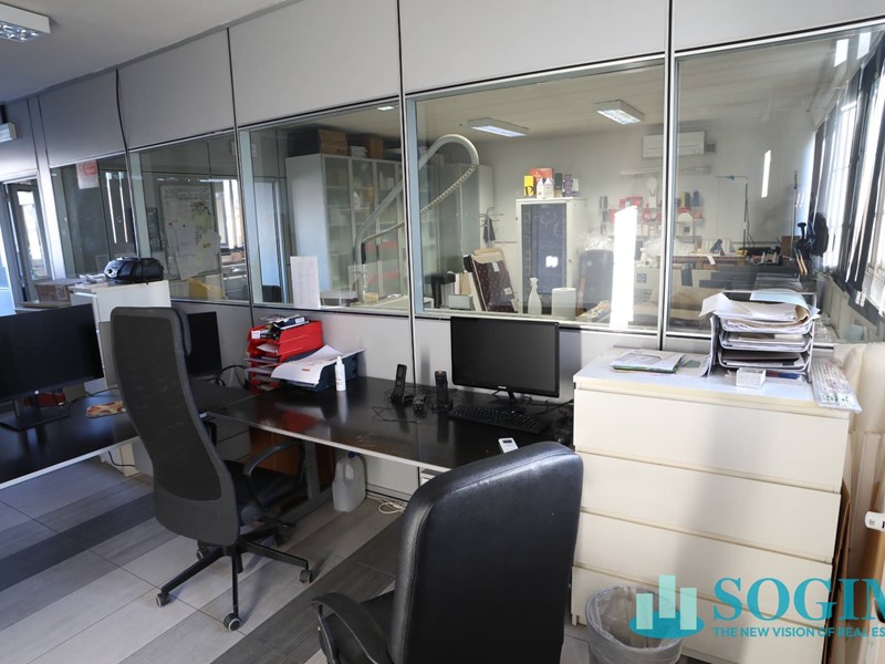Al primo piano troviamo 300 mq. adibiti ad uffici.