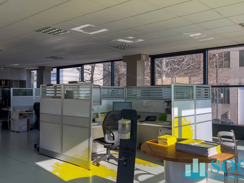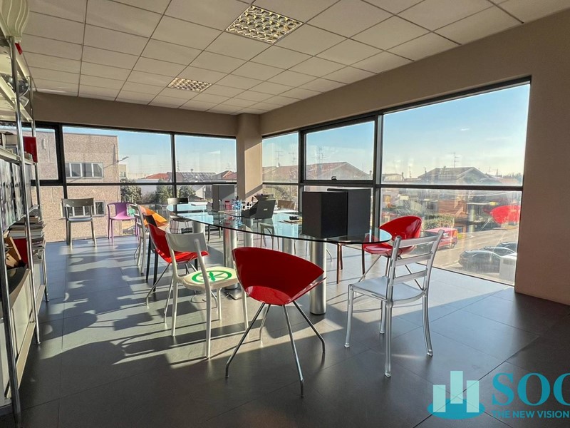 P.R e P1°: palazzina uffici di ottima immagine con elegante facciata continua a vetri posta sul fronte e in fregio alla strada, disposta su due livelli di mq. 150 circa ciascuno, raffrescati e riscaldati in pompa di calore. Ottime finiture.