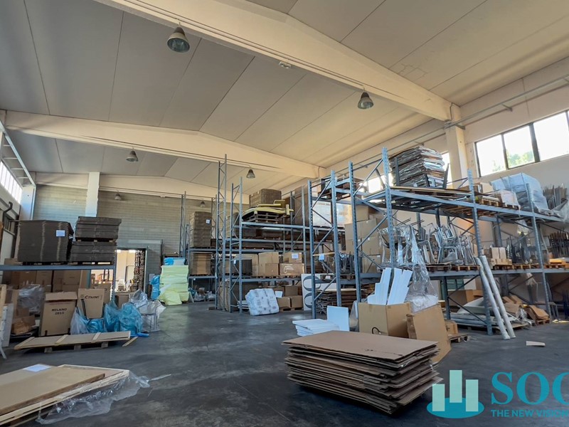 P.T.: capannone produttivo laboratorio di circa 1600 mq di cui 1000 mq h. 5,80 m. e 600 mq di h. 8,30 m, dotato di servizi e spogliatoi. Comodo carico/scarico con 2 bocche accessibili da rampa carrabile. Capannone ad uso deposito/ricovero mezzi di 600mq di h 8,30 m.
