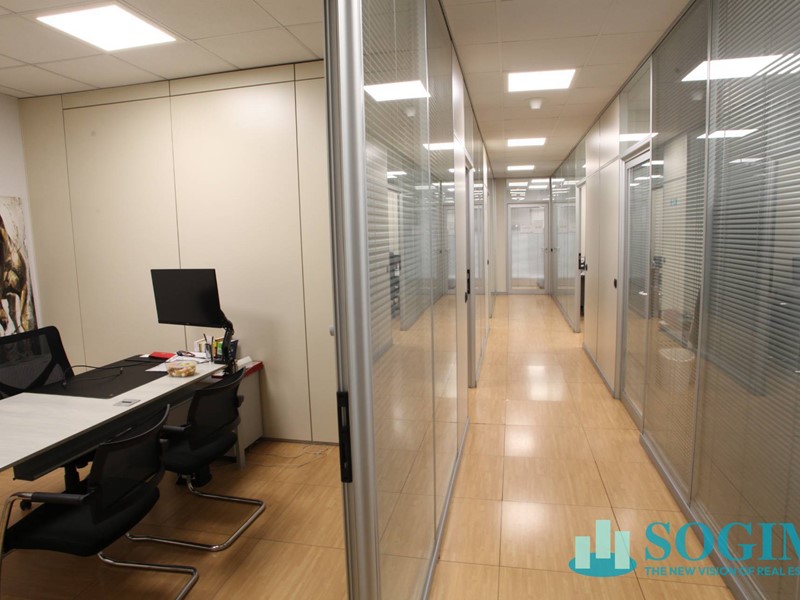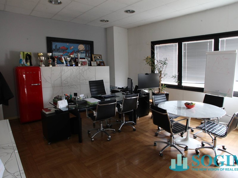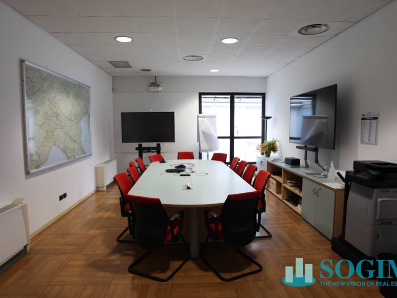 Al primo piano troviamo ulteriori 580 mq di corpo uffici. L'immobile ha un'area esterna frontale di ca. 1.000 mq oltre a cortile laterale di ca. 240 mq e area verde sul retro di ca. 430 mq.