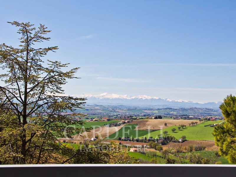 L'immobile è immerso nel verde e permette di godere di una vista mozzafiato che si estende fino alle montagne.