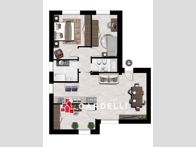 La divisione interna degli spazi e il grande balcone assicurano praticità, comfort e privacy per piccoli e grandi nuclei familiari. Possibilità di garage e di cantina.